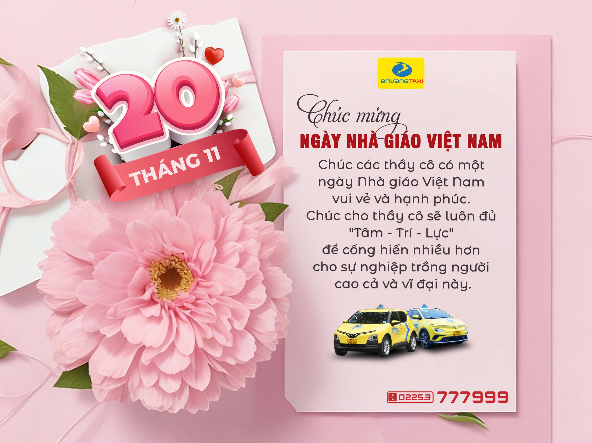 Nhân ngày Nhà giáo Việt Nam, Én Vàng Taxi xin gửi đến các quý khách hàng, quý đối tác những người đã và đang công tác trong lĩnh vực giáo dục, đào tạo những lời tri ân tốt đẹp nhất.
