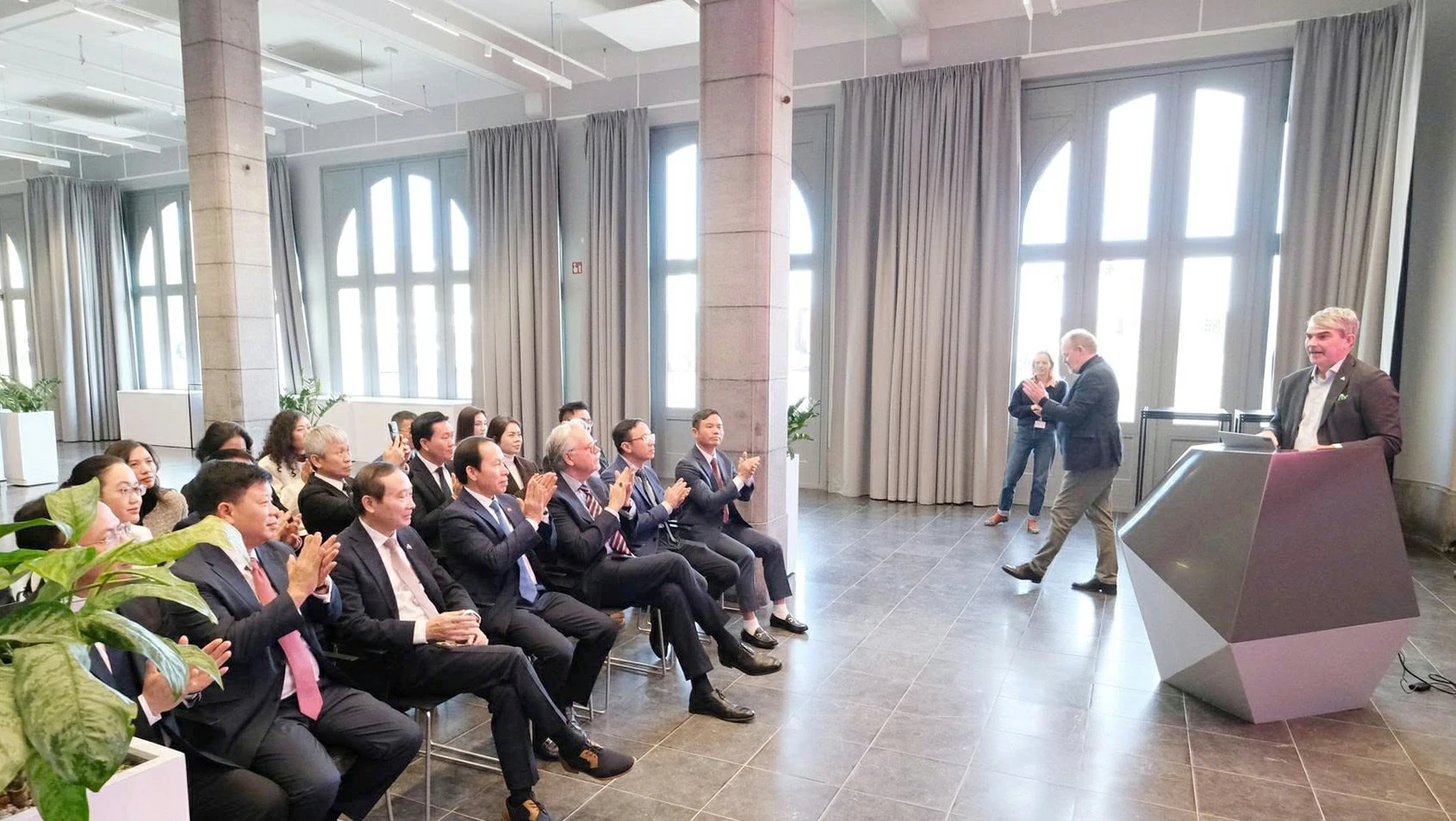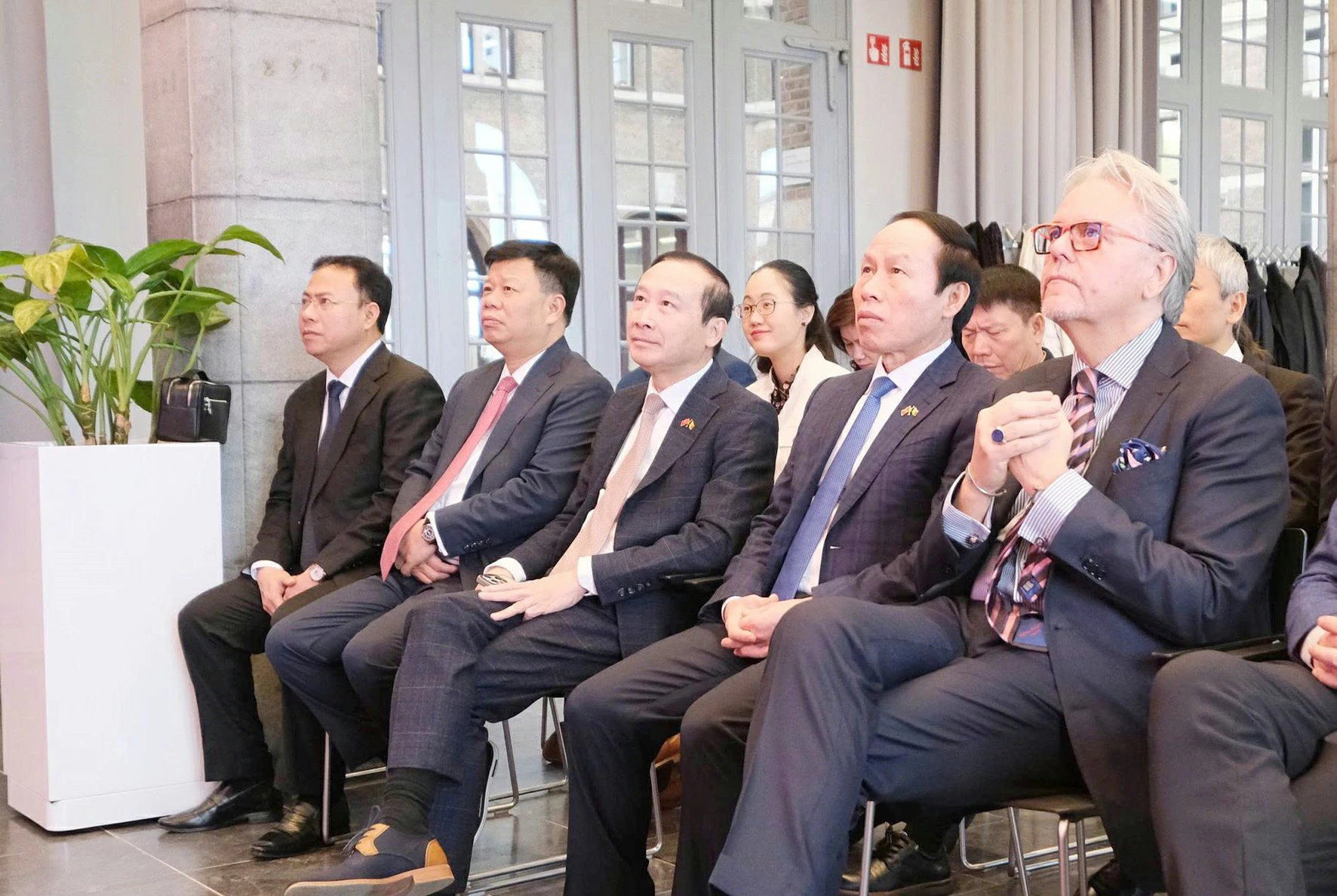 Đại diện Thượng viện Bỉ, chính quyền Antwerp và các doanh nghiệp Bỉ đang đầu tư tại Việt Nam cũng có mặt, bên cạnh Đại sứ Nguyễn Văn Thảo, Trưởng Phái đoàn Việt Nam tại Liên minh châu Âu (EU).